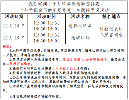 为进一步强化工作室的宣传力度,丰富科普教育活动课程内容,有效利用各个工作室的教学资源,探创空间每月都将推出一个工作室的主题活动科学课。这些科学课以工作室为依托,聚焦于不同的科学主题,旨在满足不同人群对科学知识日益增长的需求,为公众带来丰富多样的科学探索之旅。本月推出的是科学探究社“科学视角下的华夏非遗”主题科学课。