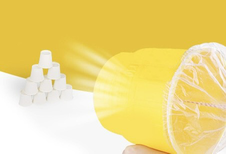 游戏规则:在指定距离内使用空气大炮,将前排的纸杯全部打倒,即为挑战成功。