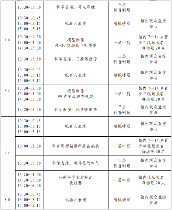 快看!科技馆的超级明星人形机器人和机器狗,已经组成“炫酷机器人天团”,准备在展厅中央C位出道啦!这还不够,我们的科技辅导员将化身“机器人指挥官”,带你近距离互动,看它们如何机智地穿越障碍,完成高难度指令!想知道机器人到底有多聪明吗?快来现场一探究竟吧!
