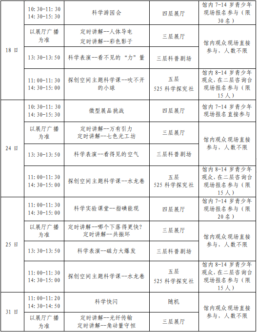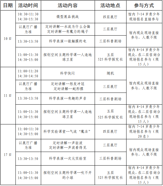 我们不做“只说不动”的科普,我们要你:看得见、摸得着、玩得嗨!七大活动板块,总有一款让你爱上科学