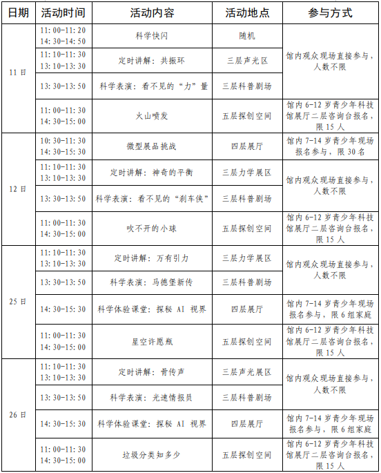 邀您亲手玩转实验、沉浸式探究奥秘。让青少年在动手实践中激发探索欲,在欢乐氛围里解锁科学新知,快来赴一场超燃的科学之约!
