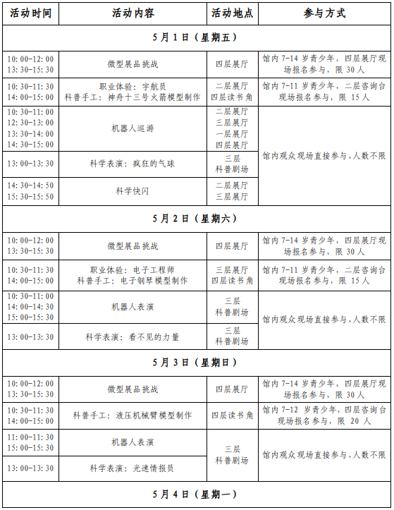 我们不做 “只说不动” 的科普,我们要你:看得见、摸得着、玩得嗨!五大主题活动,承包你的五一假期!